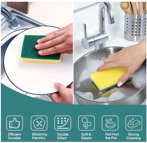 Best Sponge Scrub Pad(Pack of 8) | Heavy-Duty Kitchen Cleaning Scrubber | Long-Lasting, Non-Scratch, Super Absorbent Dishwashing Scrub Pad durable